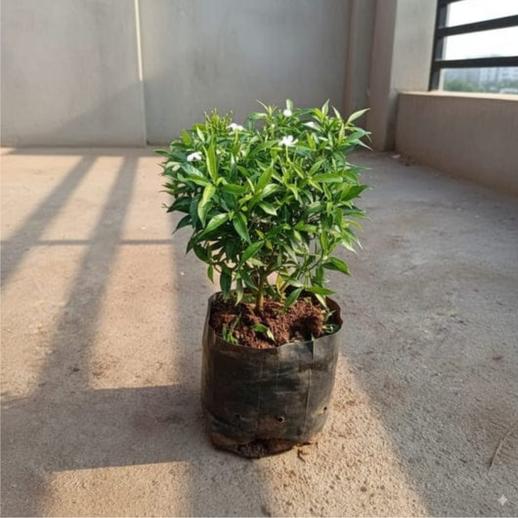Dwarf Chandani is a compact ornamental plant prized for its delicate, star-shaped flowers and graceful foliage. This specimen arrives in a 6-inch polybag, making it ideal for small spaces, balconies, or as a starter plant for collectors. The dwarf variety maintains a manageable size while delivering the same vibrant blooms as its larger counterparts. It thrives in bright, indirect light and well-draining soil, requiring moderate watering during growing seasons. Perfect for adding botanical interest to indoor displays or garden arrangements without demanding excessive space or maintenance.
