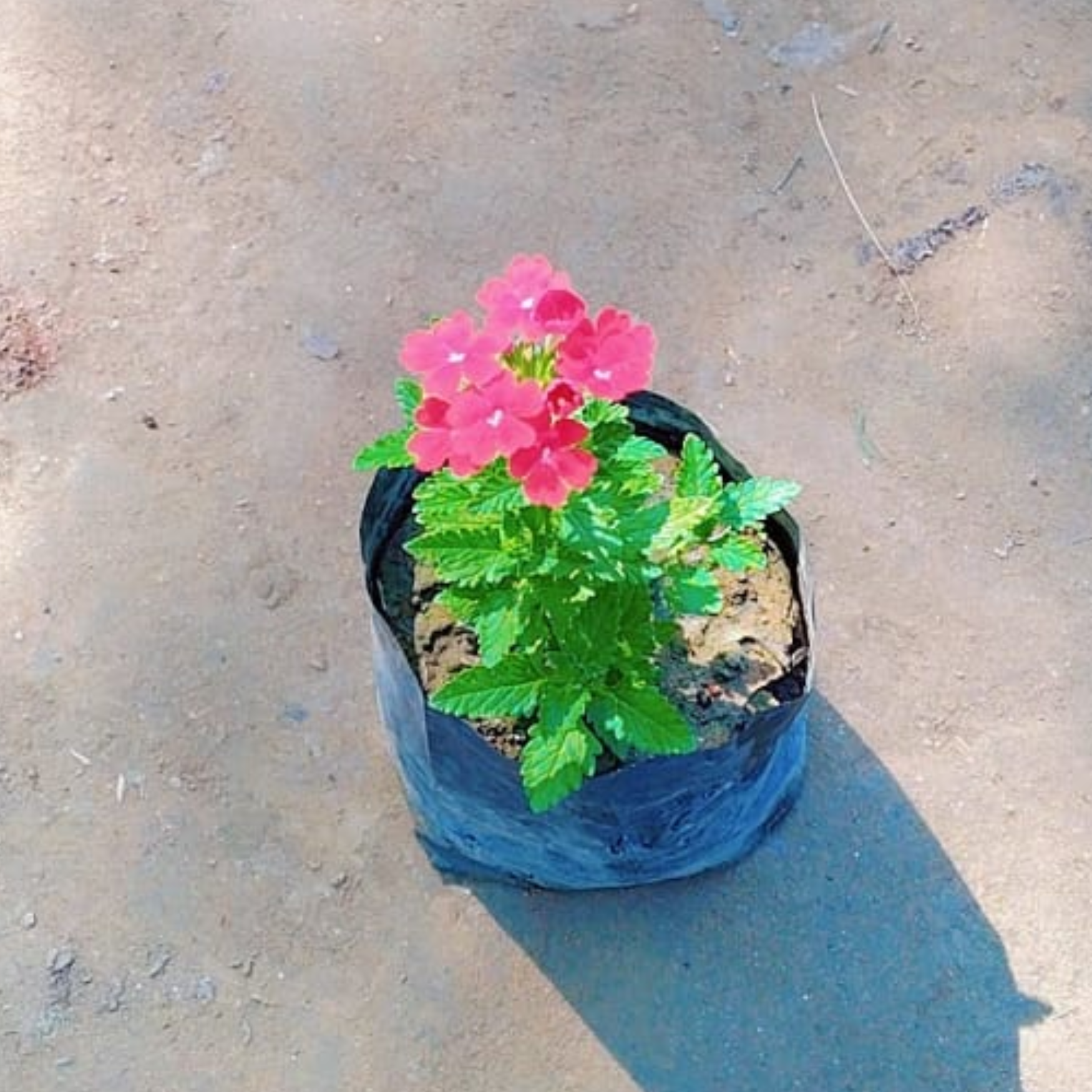 Verbena is a vibrant seasonal flowering plant prized for its prolific blooms and low-maintenance nature. This specimen arrives in a 4-inch nursery bag, ready for transplanting into garden beds or containers. Known for producing clusters of colorful flowers throughout the growing season, verbena thrives in well-draining soil and full sunlight. Ideal for borders, hanging baskets, and landscape displays, it attracts pollinators while requiring minimal fertilization. Perfect for both novice and experienced gardeners seeking reliable seasonal color.